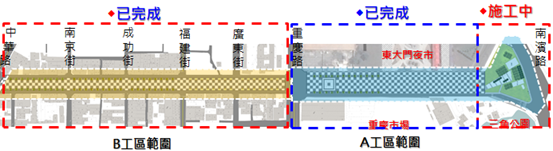 本工程沿自由街由中華路至重慶路段全長約800公尺,兩側綠帶及林蔭大道圍塑出具有時尚流行的商店街,結合街道家具、古典景觀燈及花崗石鋪面,引導至端景水池營造出兼具時尚與藝文氣息的自由香榭大道,人行道配合綠帶營造舒適悠然的徒步休閒空間,配合重慶市場全新風貌並串連陽光電城,夜間照明的變化搭配公共藝術塑造花蓮夜晚新亮點。