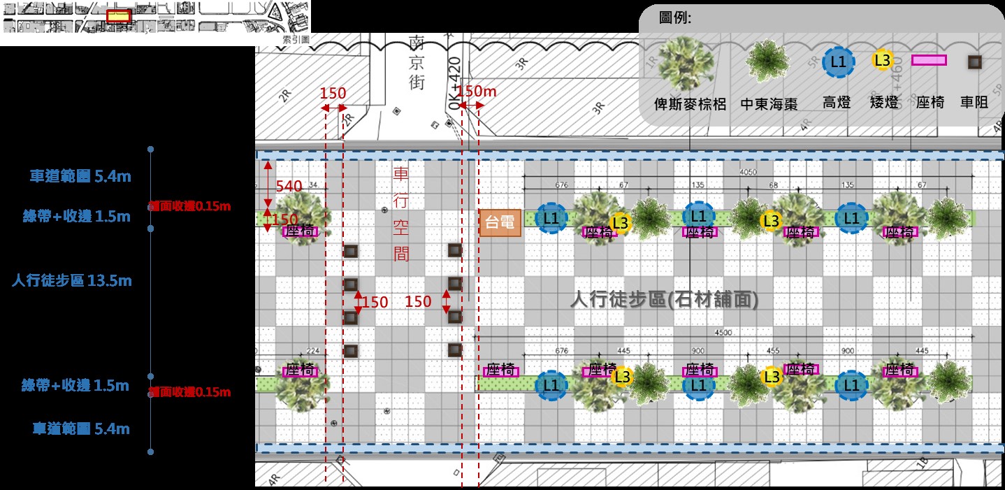 配合整體開放空間系統架構與市區其他公園綠地、學校、文創園區、市場、商店街及遊憩據點相結合,形成健全之休憩觀光網絡,並利用光、音、綠塑造良好的休閒空間環境。