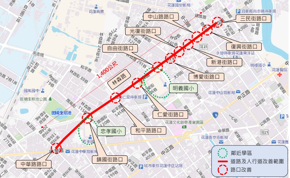 工程位置位於花蓮市林森路之中華路路口至三民街路口。