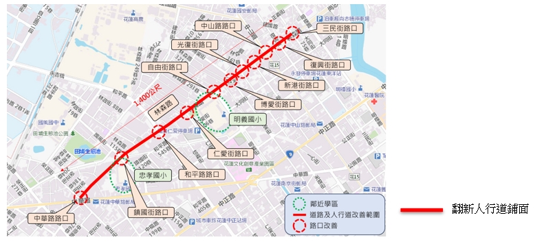 花蓮縣花蓮市林森路校園周邊人行道改善工程