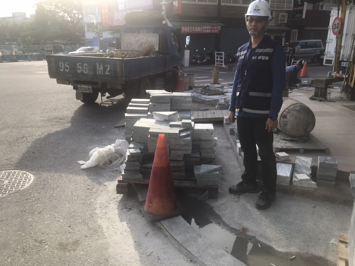 主要採用30cm*30cm高壓透水磚,採正方形組合變化,與周邊設施易於搭配及接合。