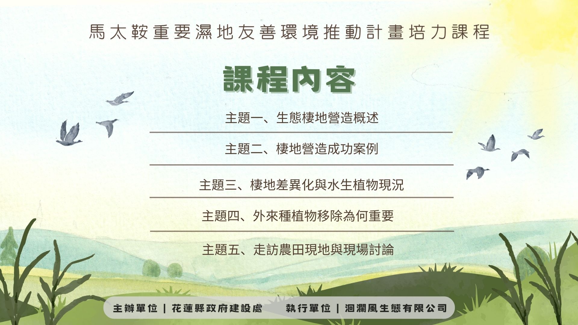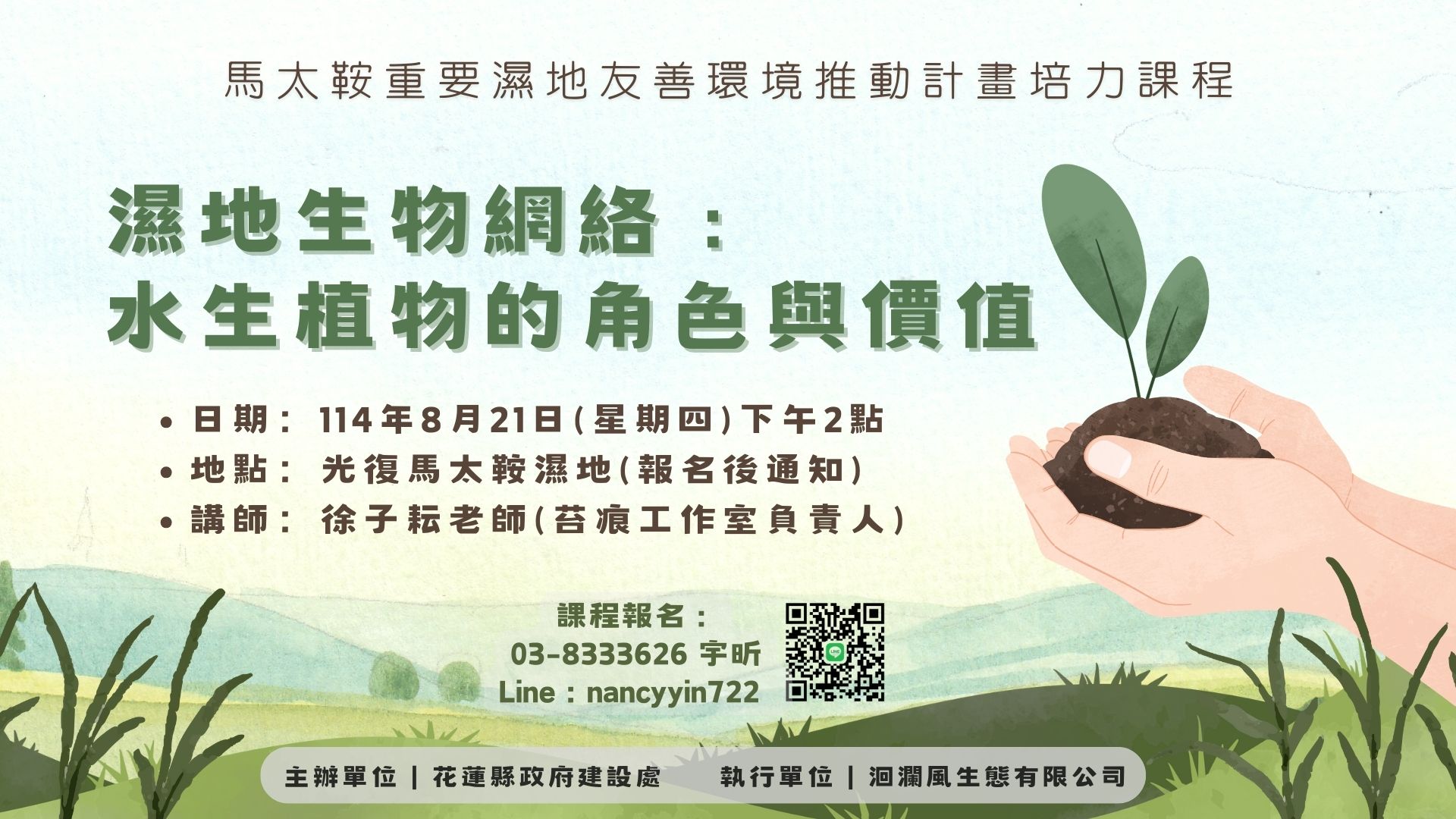 【馬太鞍重要濕地友善環境推動計畫培力課程】想更深入認識濕地的奧秘與水生植物的重要角色嗎? 這堂課將結合案例分享、現地走訪與討論,帶您體驗濕地生態的美與價值!